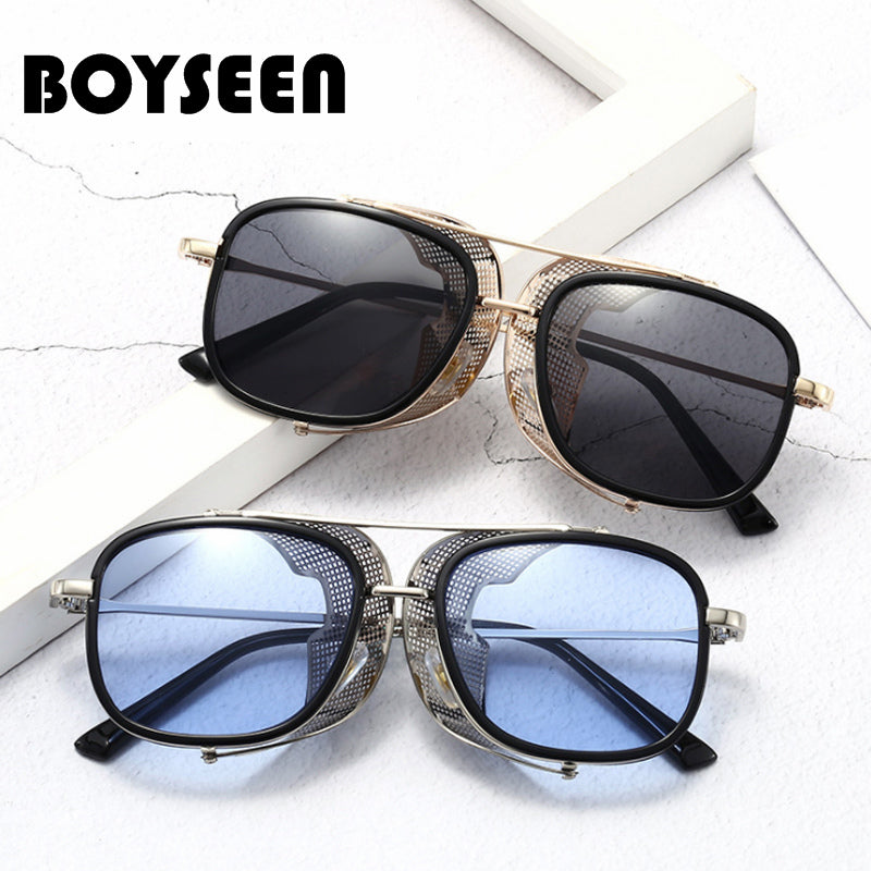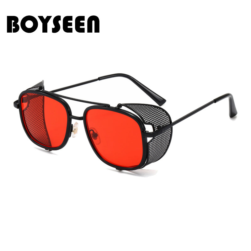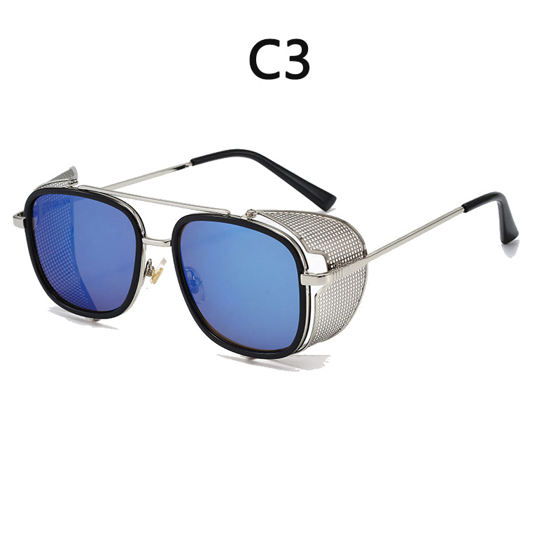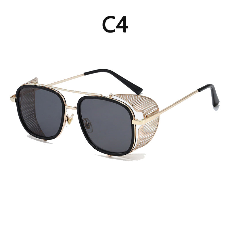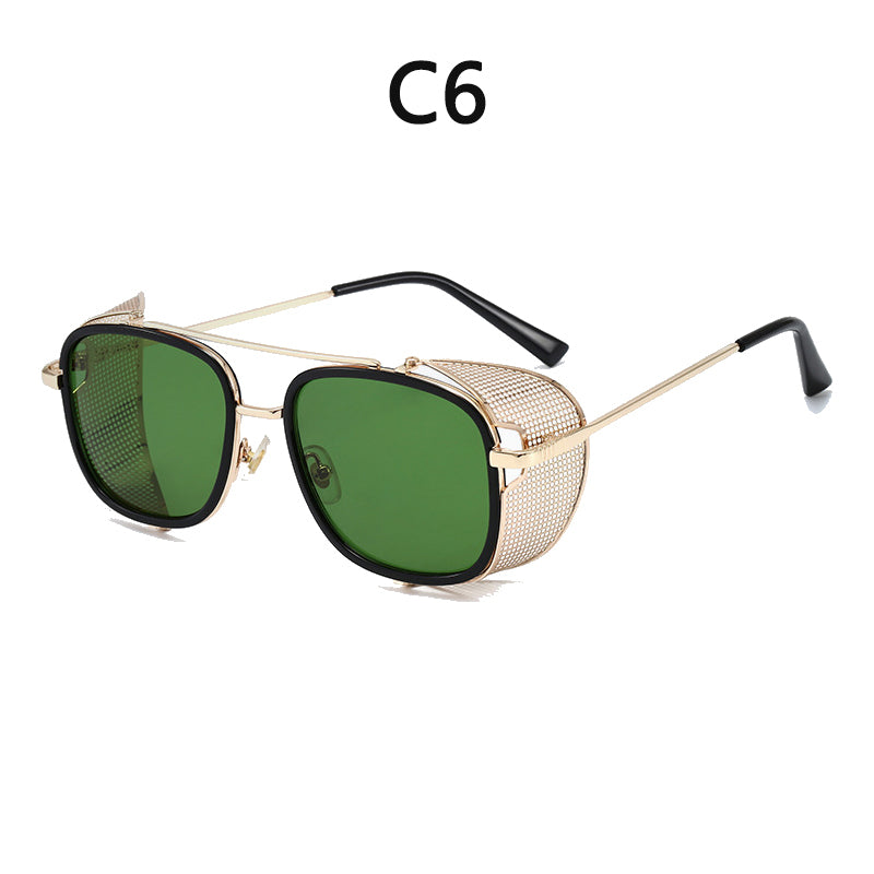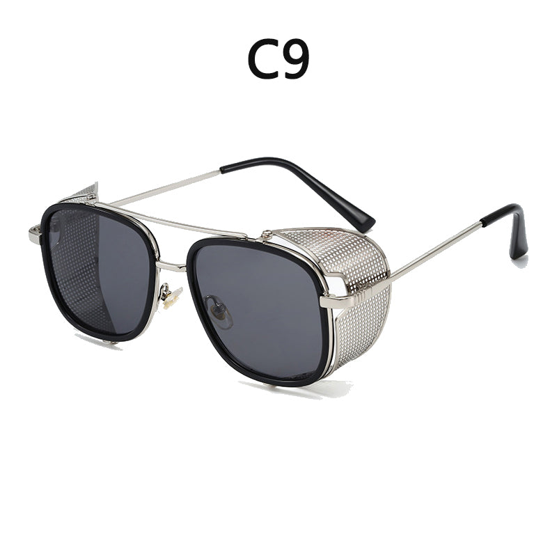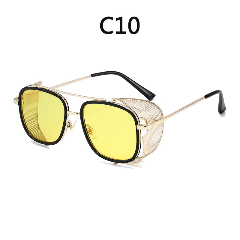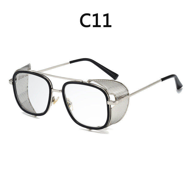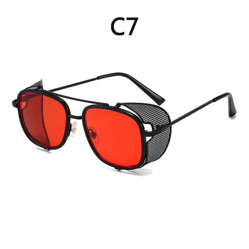 European and American Personality Steampunk Flip Sunglasses Square Fashion Metal Sunglasses Men's Women Travel Street Shooting Glasses